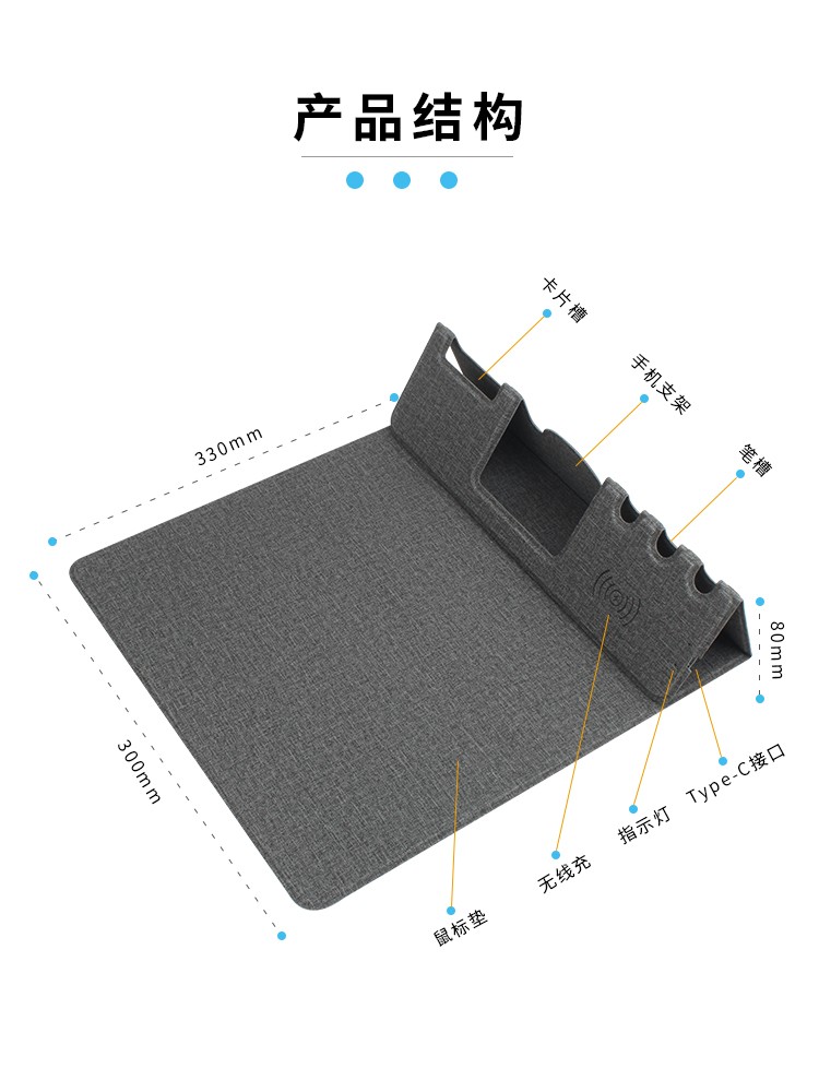 支架款無線充鼠標墊,手機一放,立即充電,給手機提供支架,布面,表面細膩、平整、操作穩定,底部淺絨,防滑穩固