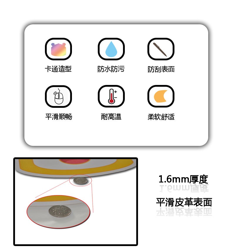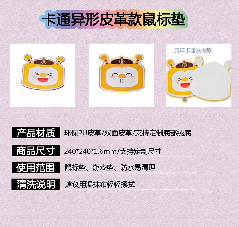 異形皮革鼠標墊,卡通可愛外形,PU材質,防水耐臟,雙面皮革,貼合桌面