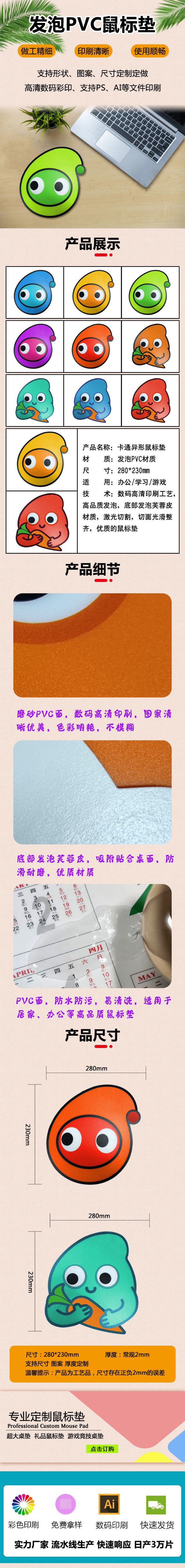 通亞工藝品13年專注鼠標墊的生產制作,公司擁有先進的鼠標墊制作設備,實力雄厚的研發隊伍和完善的生產設備,東莞和深圳雙生產基地,并且嚴格執行ISO9000的質量管理體系,體系完善、工藝精湛、品質保證、量大價優。